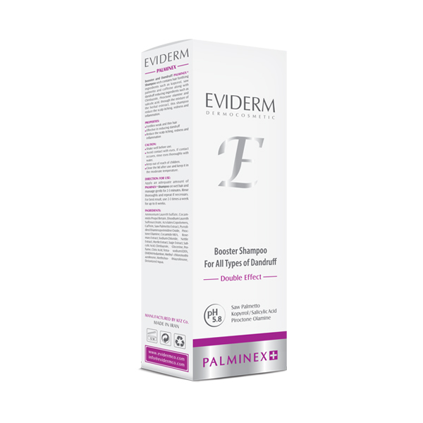 شامپو دو منظوره پالمینکس پلاس اویدرم یک شامپو تقویت کننده و ضد ریزش مو میباشد. که علاوه بر جلوگیری و بهبود انواع علل ریزش مو شوره سر را رفع نموده و علائم شوره همچون خارش و التهاب را رفع مینماید.